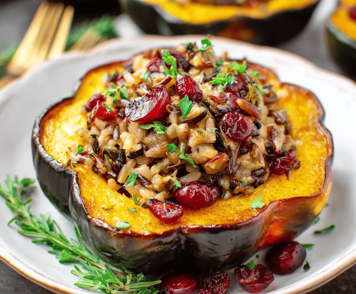 Acorn Squash Stuffed with Wild Rice and Cranberries