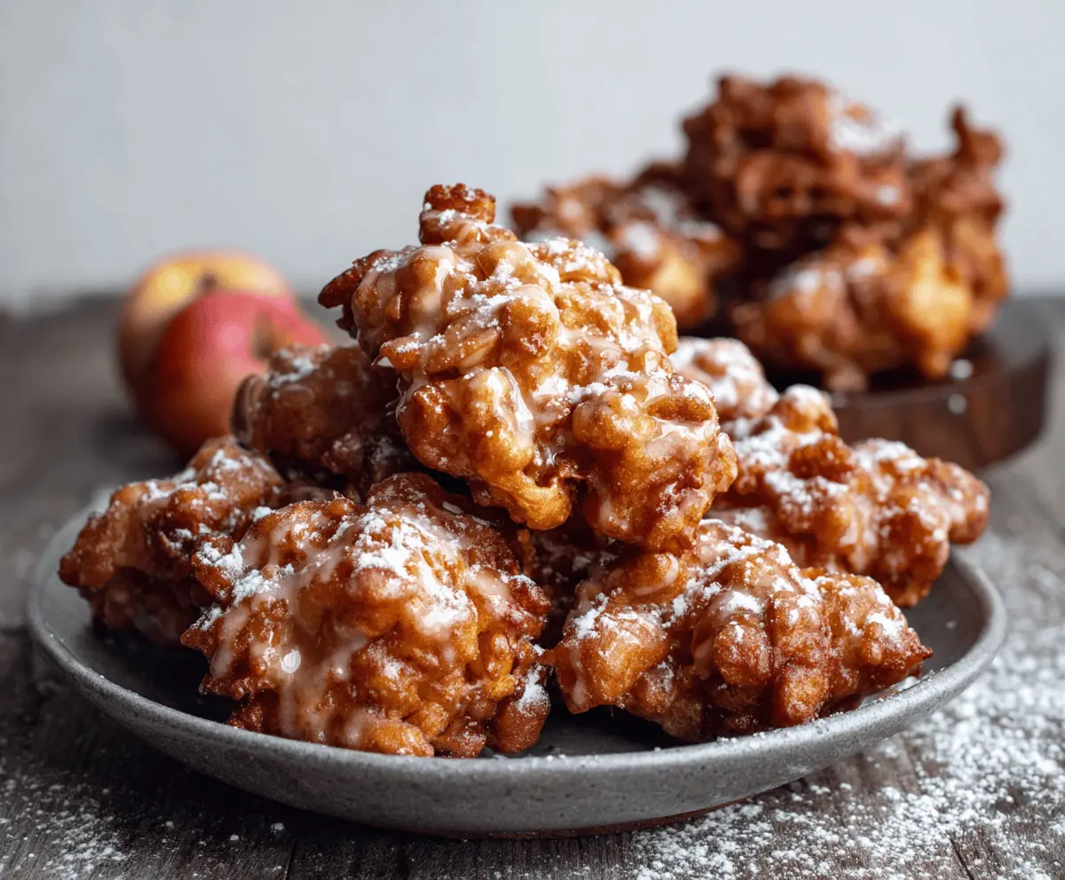 Apple fritters are warm, sweet, and packed with yummy apple pieces! These little treats are crunchy on the outside and soft inside, making them a perfect snack.