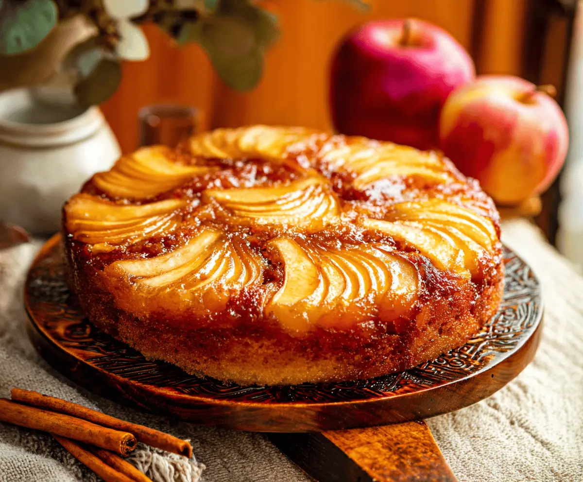 Flipping it over is like magic! I love how the apples look all fancy on top. Plus, it’s so easy to make that you can whip it up in no time—great for when friends drop by!