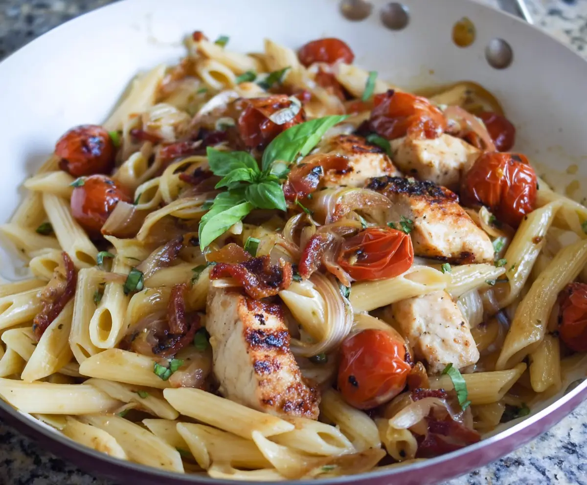 Balsamic Chicken Pasta is a tasty dish packed with flavor! It features tender chicken pieces coated in a sweet and tangy balsamic sauce, mixed with perfectly cooked pasta.