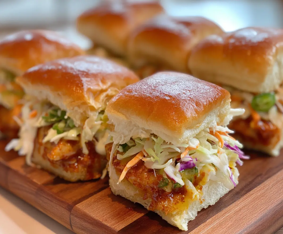 Place the top half of the bun over the slaw and chicken, then serve these yummy sliders right away. They are best enjoyed warm and make for an excellent appetizer, party snack, or casual meal!