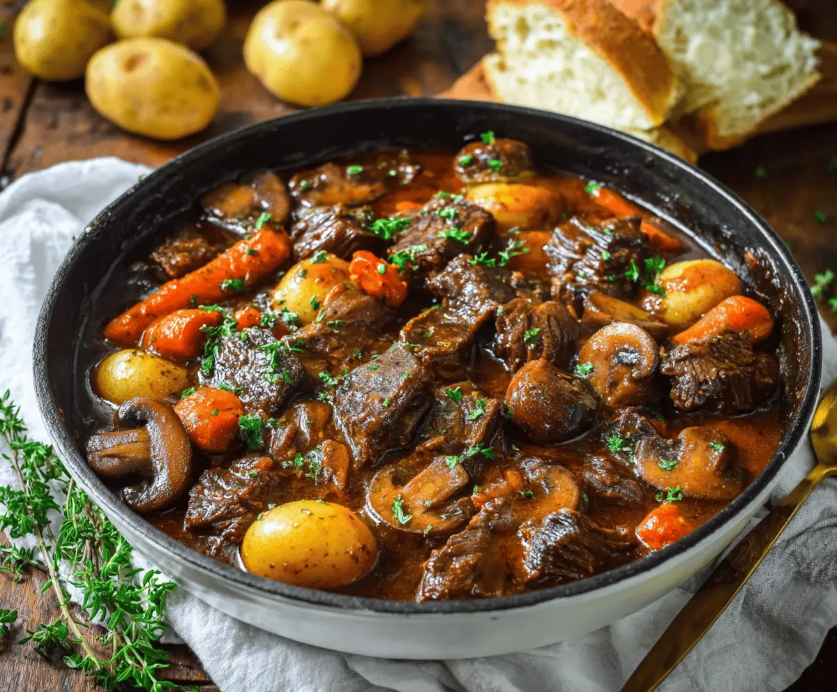 Hearty Beef Stew with Mushrooms is a warm and comforting dish. Tender beef chunks simmer with mushrooms, carrots, and spices for a rich flavor that’s simply delightful.