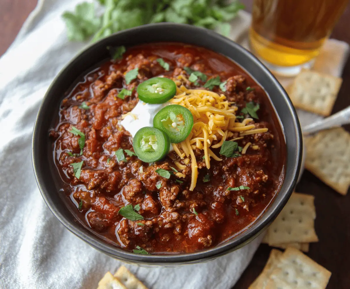 Enjoy this hearty, beer-infused chili! It’s perfect for gatherings, game days, or just a cozy evening at home. It’s sure to warm your heart and fill your belly! 😊