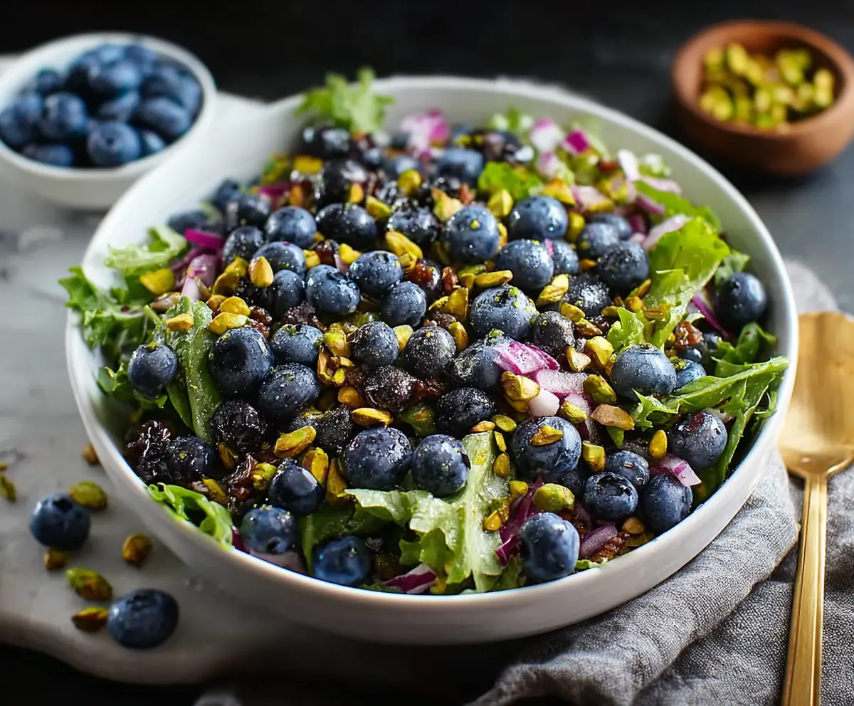 This Blueberry Pistachio Crunch Salad is a colorful mix of juicy blueberries, crunchy pistachios, and fresh greens. It’s light, refreshing, and perfect for sunny days!
