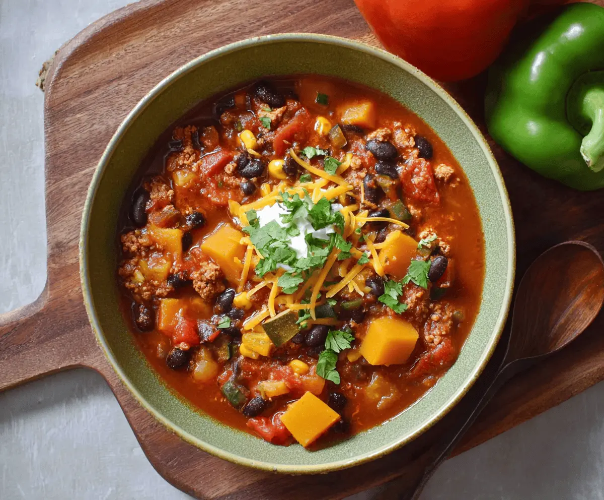 Enjoy this comforting and colorful chili that balances the sweetness of butternut squash with the robust flavors of classic chili spices!