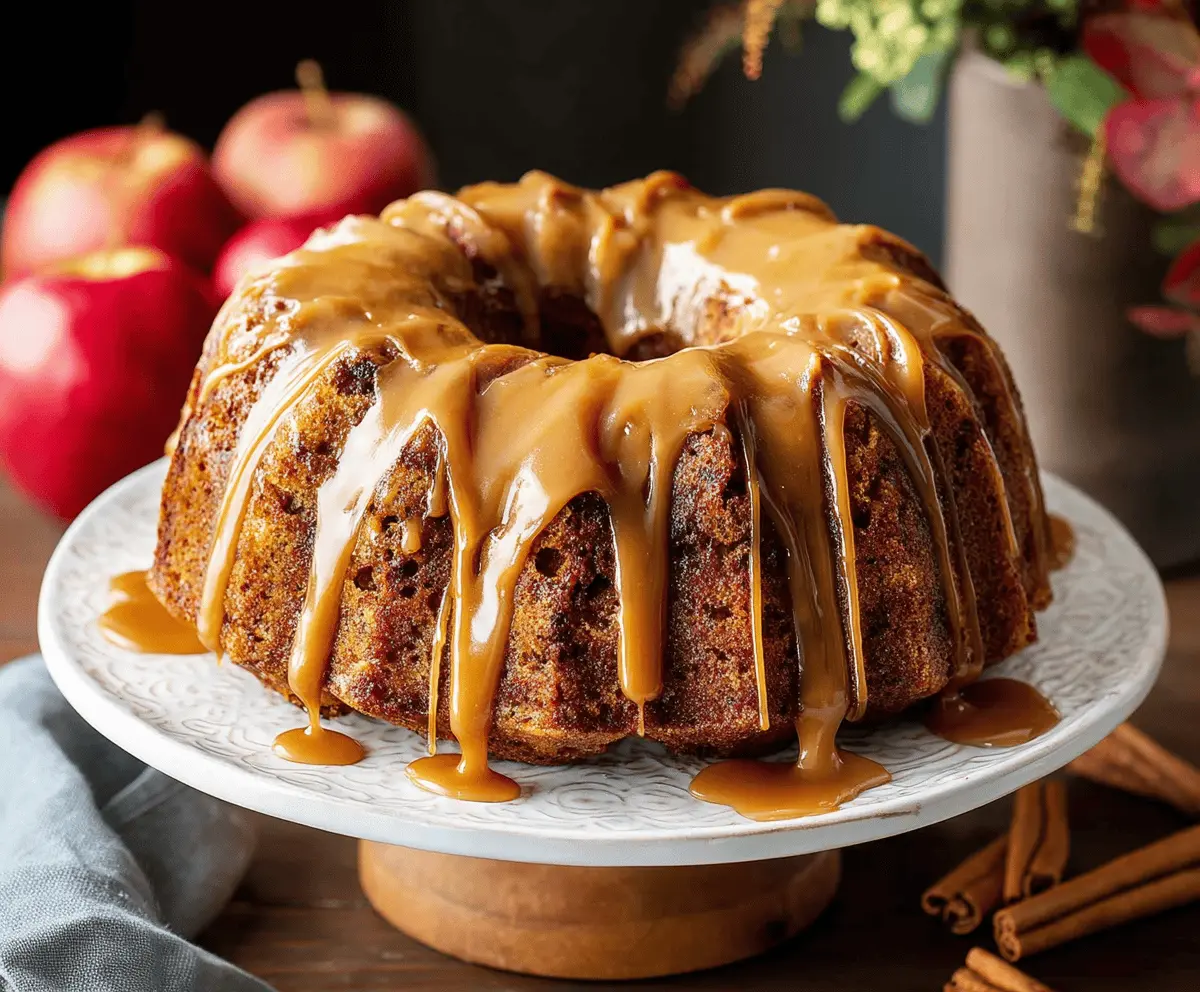 Enjoy this moist, warmly spiced Caramel Apple Bundt Cake, packed with delightful flavors and a rich buttery caramel glaze! 🍏✨