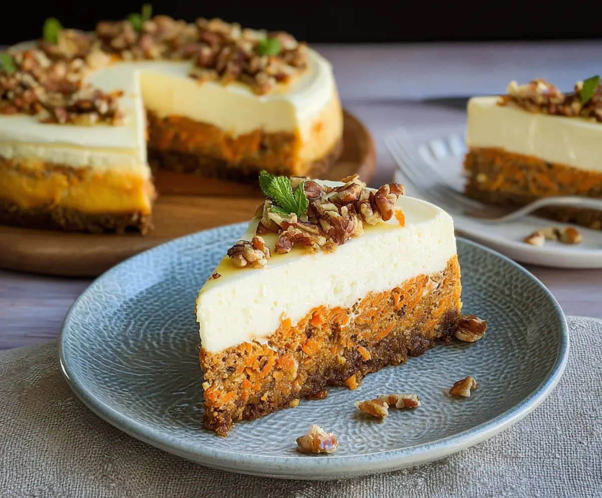 This Carrot Cake Cheesecake is a tasty mix of two favorites! With spiced carrot cake and creamy cheesecake layers, it’s perfect for all sweet tooth lovers.