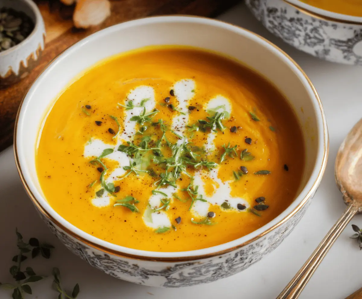 This bright orange soup is not only smooth and velvety but also has a gentle zing from the ginger, complemented by the natural sweetness of the carrots and the creaminess of the coconut milk. Perfect as a light meal or an elegant appetizer!