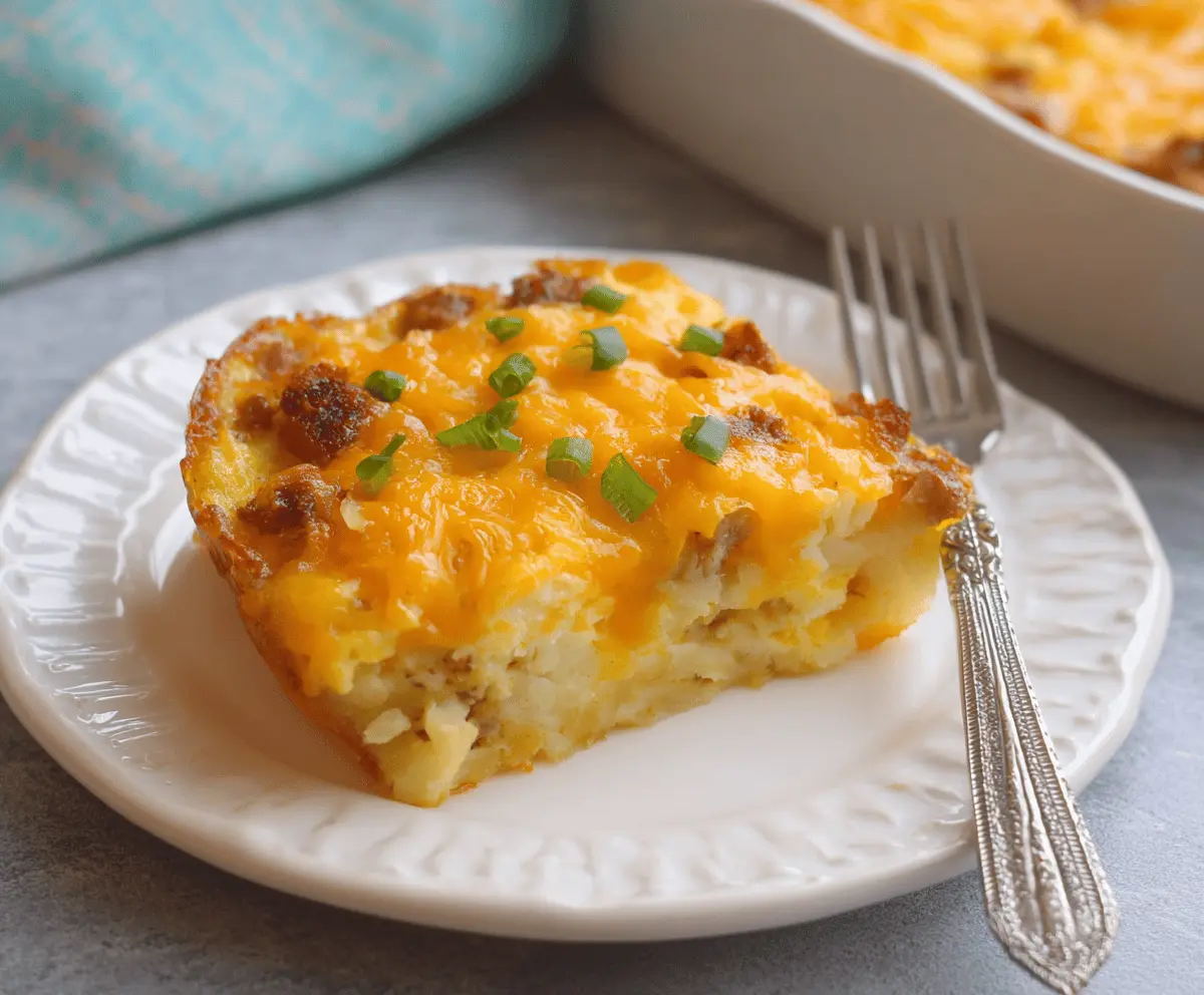Slice the casserole into squares and enjoy it warm. It’s perfect for breakfast or brunch and is bound to be a hit with family and friends!