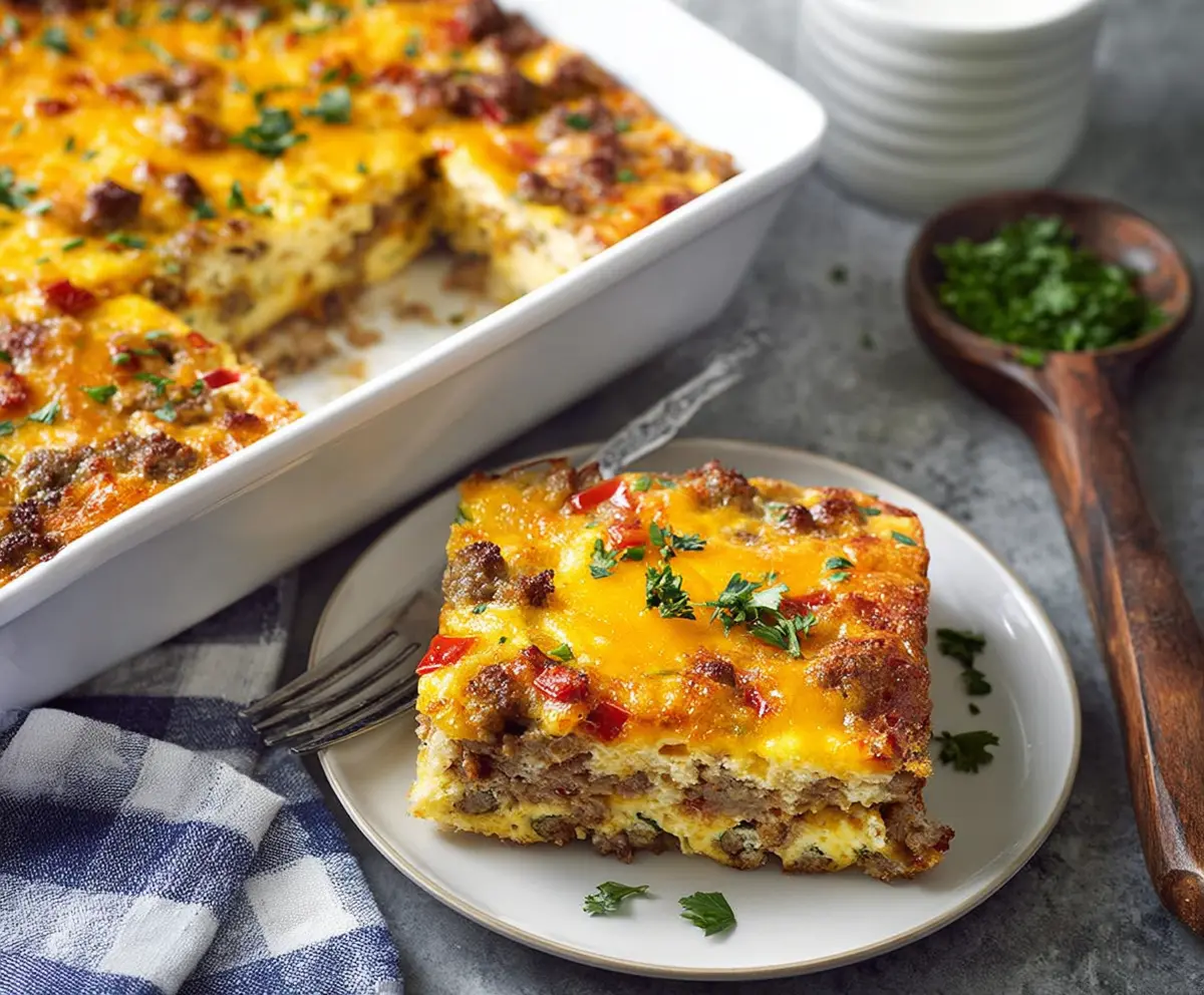 This Cheesy Sausage Breakfast Casserole is a warm, comforting dish that combines fluffy eggs with flavorful sausage and gooey cheese. Perfect for breakfast or brunch!