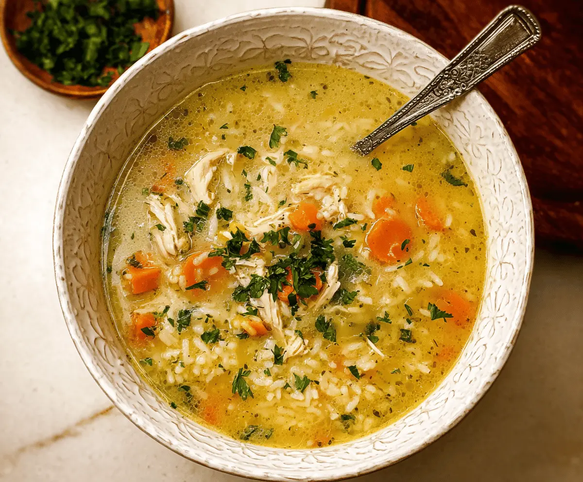 Carefully ladle the warm soup into bowls. Garnish with freshly chopped parsley for a lovely finish and extra flavor. Serve hot and enjoy every comforting spoonful of your Chicken and Rice Soup!