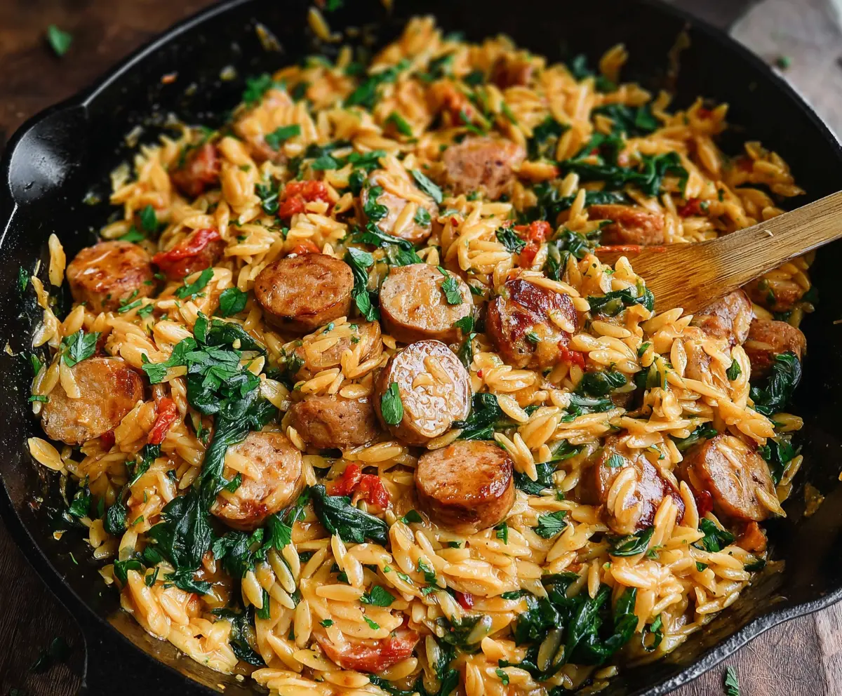 This Chicken Sausage Orzo Skillet is a cozy, one-pan meal that combines tender orzo pasta with flavorful chicken sausage and colorful veggies. It’s quick and satisfying!