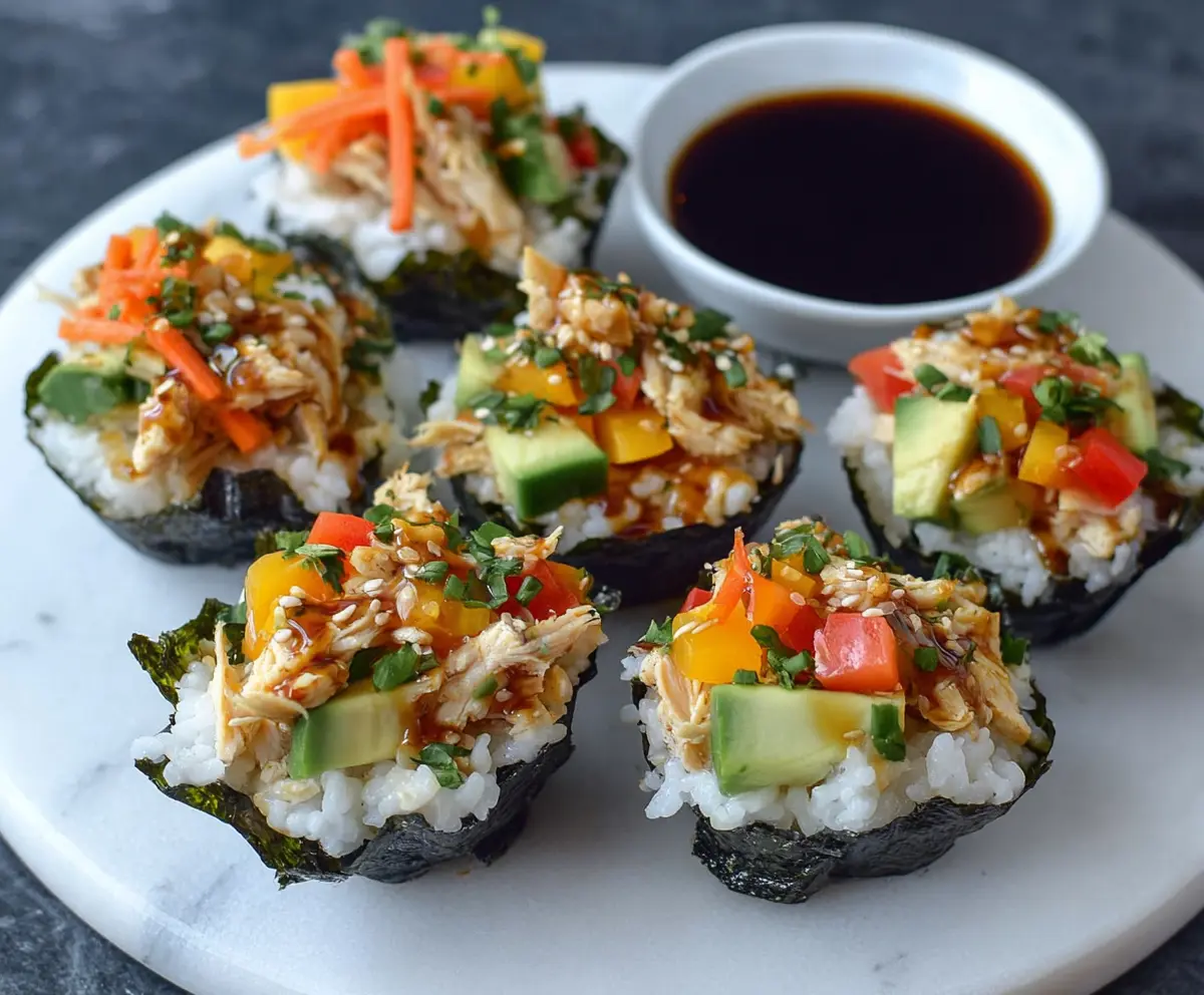 These Chicken Sushi Cups are a fun twist on traditional sushi! Made with tender chicken, fresh veggies, and your favorite sauces, they’re a tasty bite-sized treat.