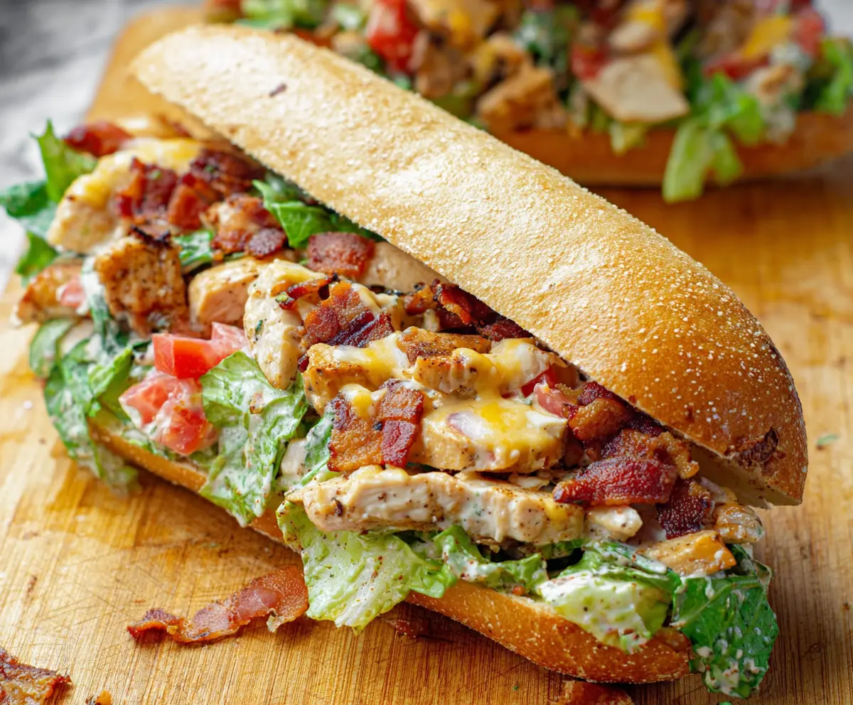 This Chopped Chicken Bacon Ranch Sandwich is a tasty treat! It’s made with juicy chicken, crispy bacon, and creamy ranch dressing, all packed into a soft bun. Yum!