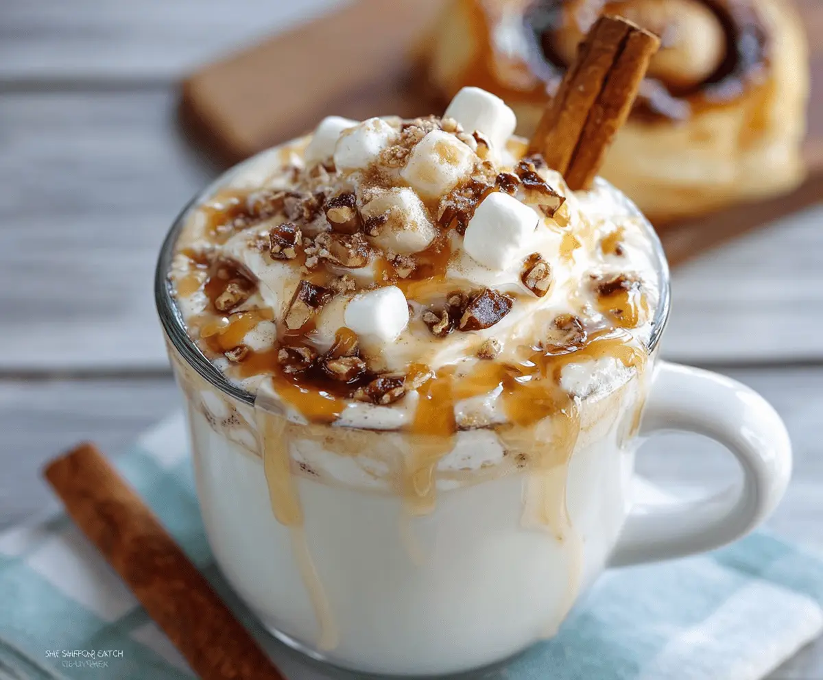 Serve immediately while it’s hot and get ready to enjoy your cozy Cinnamon Bun White Hot Chocolate! Perfect for chilly days and festive gatherings!
