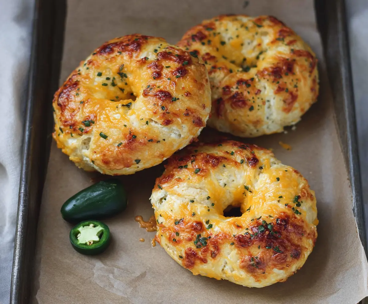 These Cottage Cheese Jalapeño Cheddar Bagels are warm and tasty, with a spicy kick from jalapeños and cheesy goodness in every bite. A fun twist on your usual bagels!