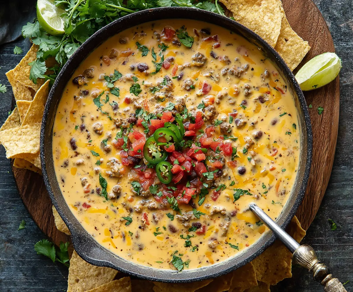 Serve immediately with tortilla chips and lime wedges on the side for an added zing. Your Cowboy Queso is ready to be enjoyed with family and friends!