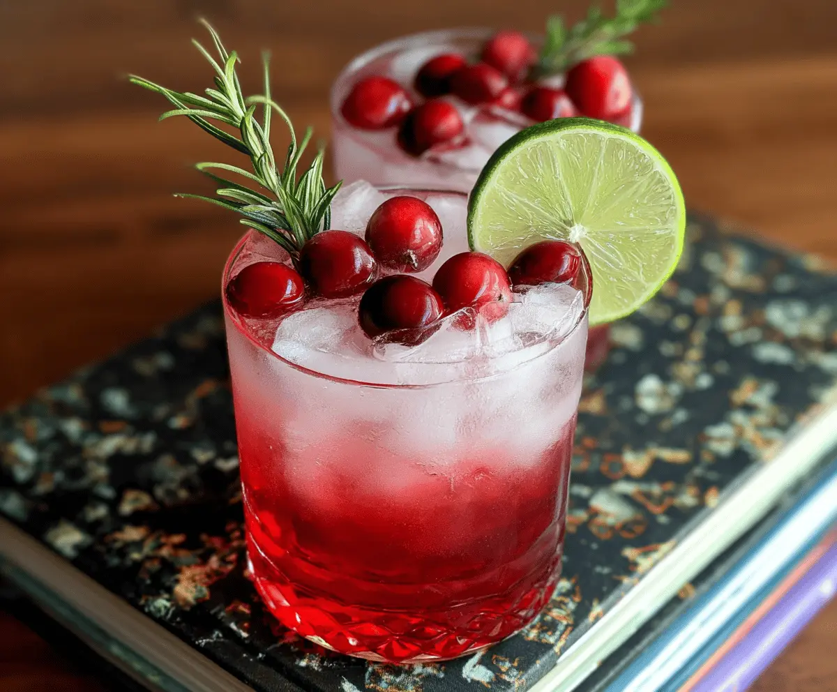 Garnish your cocktail with a handful of fresh cranberries and a sprig of rosemary for a lovely presentation. Place a lime wedge or slice on the rim or inside the glass for extra flair.