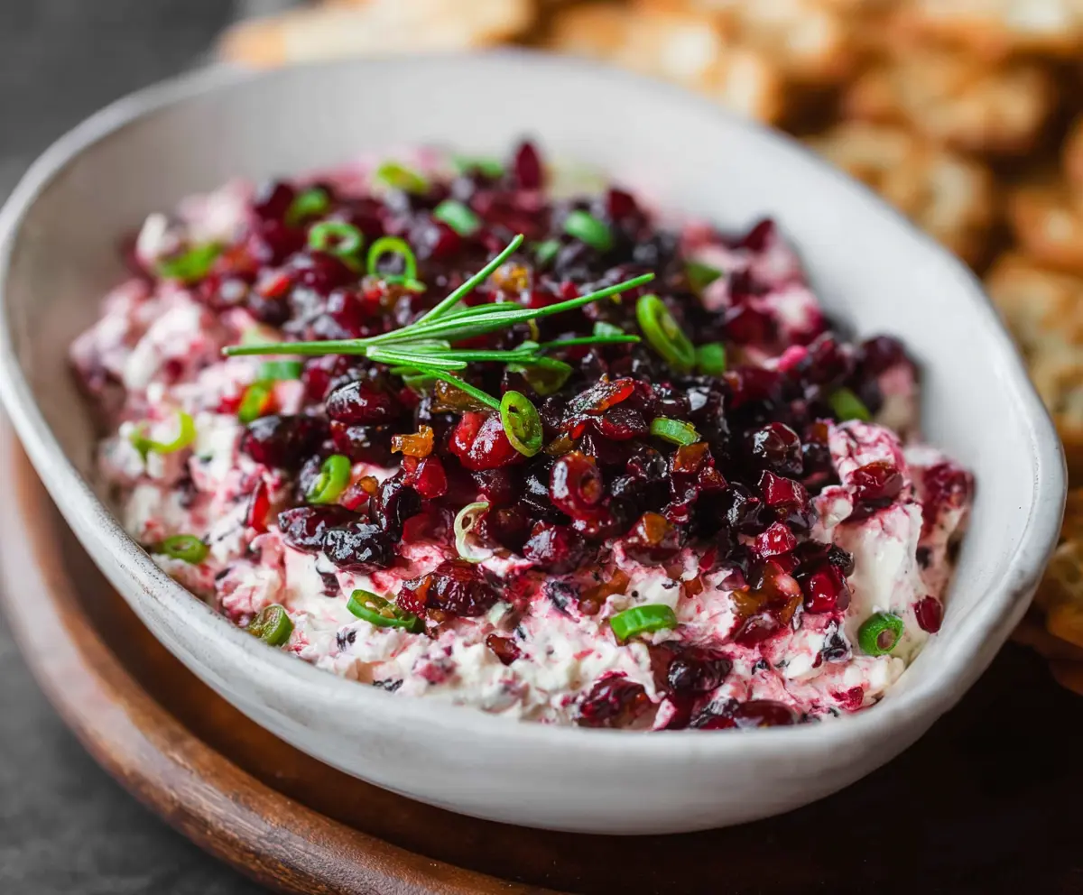 Yes, you can prepare the dip a few hours ahead. Just assemble everything except for the cranberries, then fold them in just before serving to maintain the best texture. Store it in the fridge until you’re ready to serve.
