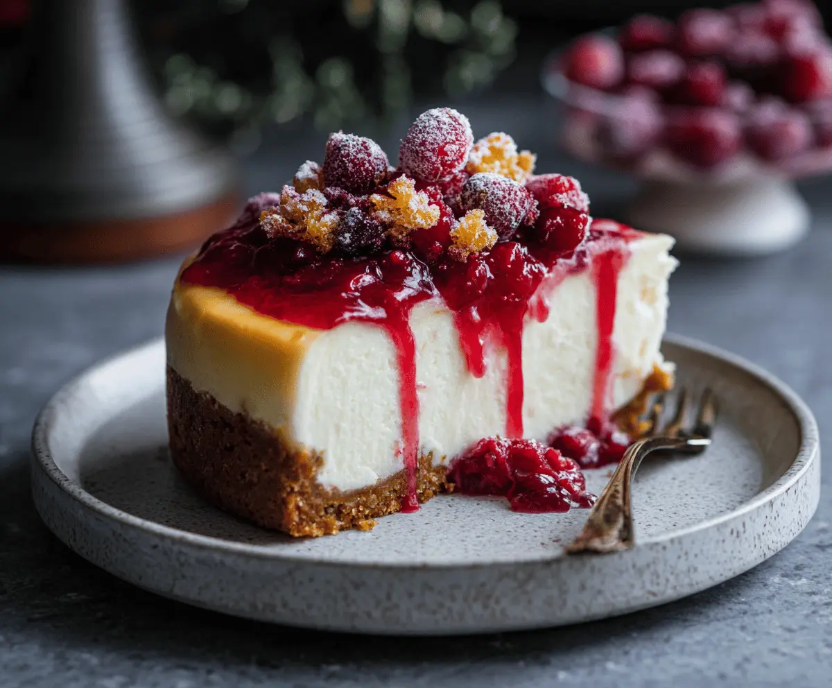 When you’re ready to serve, carefully remove the cheesecake from the springform pan. Spoon the cranberry orange topping over the cheesecake generously. If you’re feeling festive, add extra fresh cranberries on top and dust with powdered sugar.