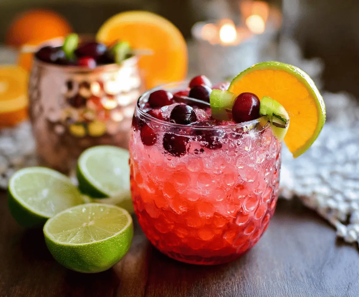Garnishes like fresh cranberries and citrus slices add a nice touch and make the drink visually appealing. Enjoy this drink in good company!