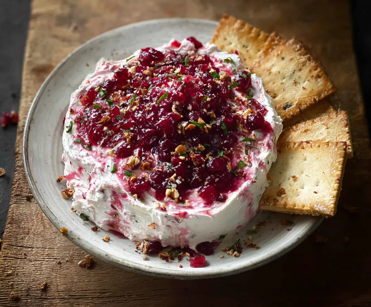 You can prepare the whipped dip base in advance and store it in the fridge for up to 24 hours. Just keep the cranberry sauce separate until you’re ready to serve, then top it right before serving for the best taste and presentation.