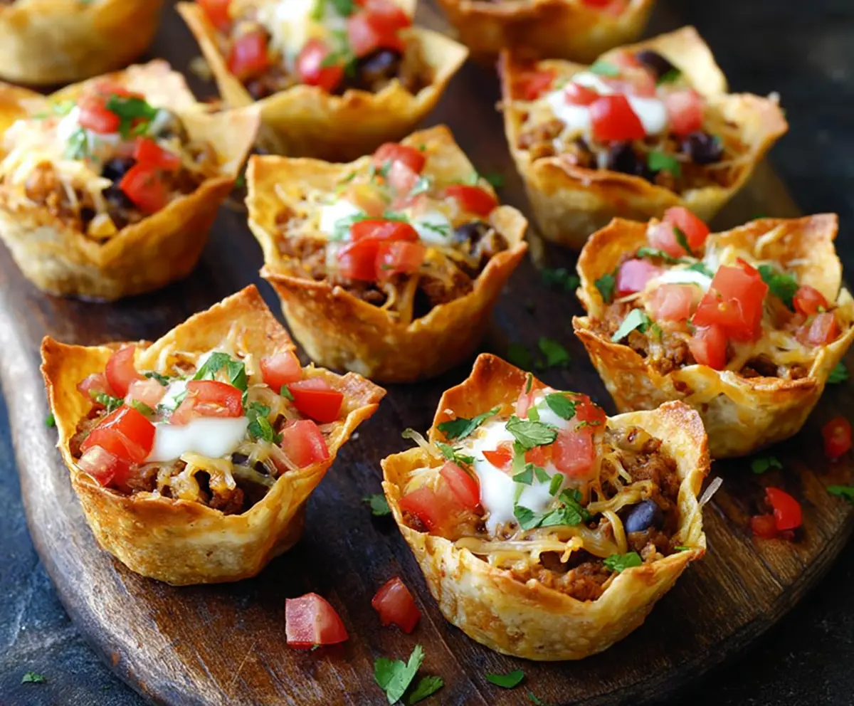 Crunchy Nacho Cups are a fun and tasty snack! With crispy tortilla cups filled with cheese, beans, and your favorite toppings, these little bites pack a big flavor.