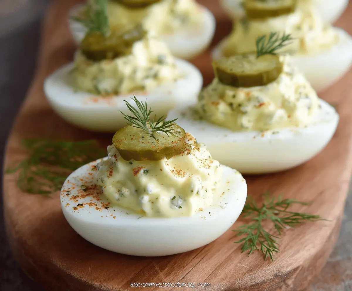 Dill pickle deviled eggs are a fun twist on a classic snack! They combine creamy egg yolks with tangy dill pickles and a sprinkle of dill, giving each bite a zesty kick.