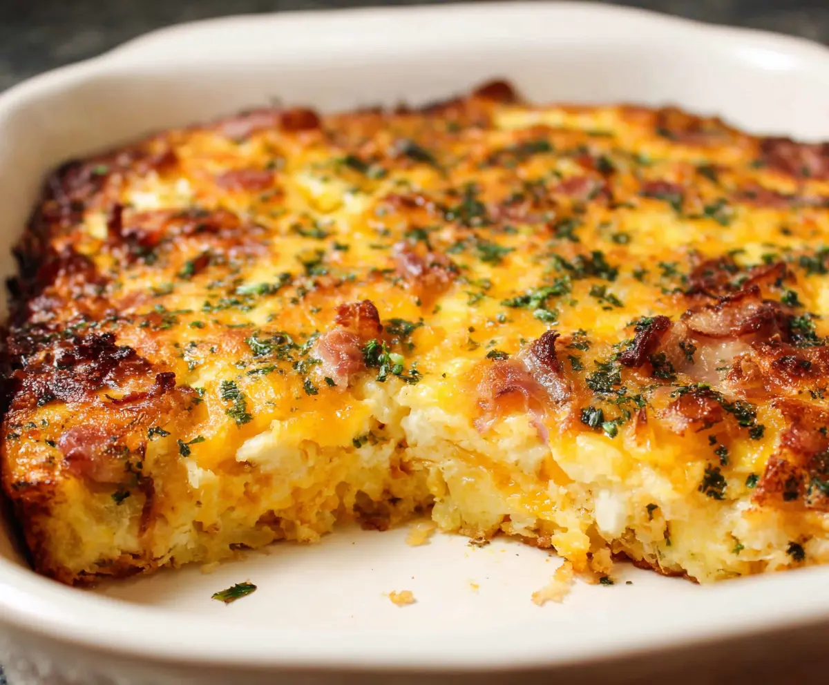 Sprinkle the remaining 1/2 cup of shredded cheddar cheese over the top for that yummy, cheesy finish. Pop it in the preheated oven and bake for about 45 to 50 minutes. Keep an eye on it—it’s ready when the eggs are set, and the top is a nice golden brown.