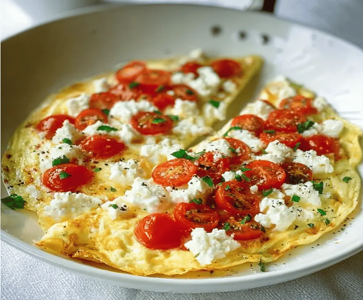 This feta and tomato omelet is a bright and tasty way to start your day! The creamy feta cheese combines perfectly with juicy tomatoes for a burst of flavor in every bite.