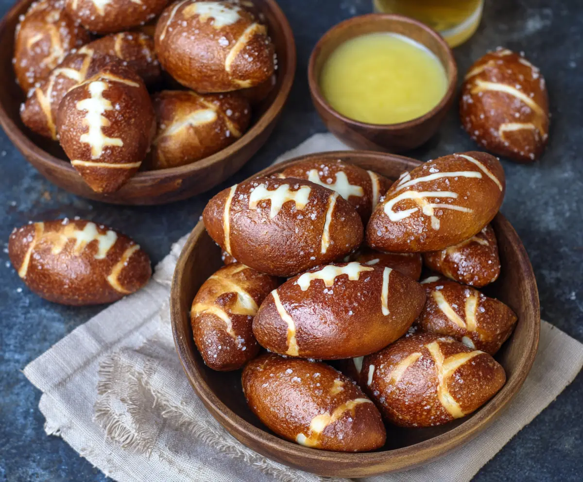 Your football-shaped soft pretzel bites are now ready! Perfect for sharing at gatherings or enjoying during the big game. 🏈