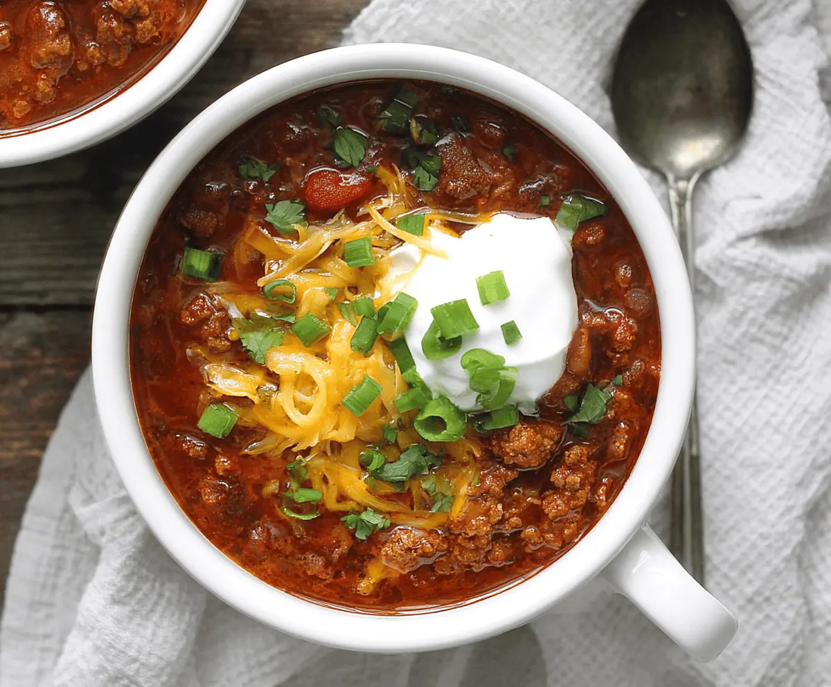Now comes the fun part! Serve your chili hot in bowls and top it with your choice of shredded cheddar cheese, a dollop of sour cream, sliced jalapeños, or chopped fresh cilantro. Don’t forget lime wedges for that extra zing. Enjoy every spoonful!