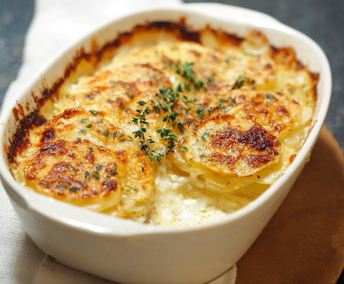 Once done, take your gratin out of the oven and allow it to rest for about 10-15 minutes before serving. This helps it to set nicely. When you’re ready, garnish with some fresh thyme leaves and enjoy warm! It’s the perfect comforting side dish that everyone will love.