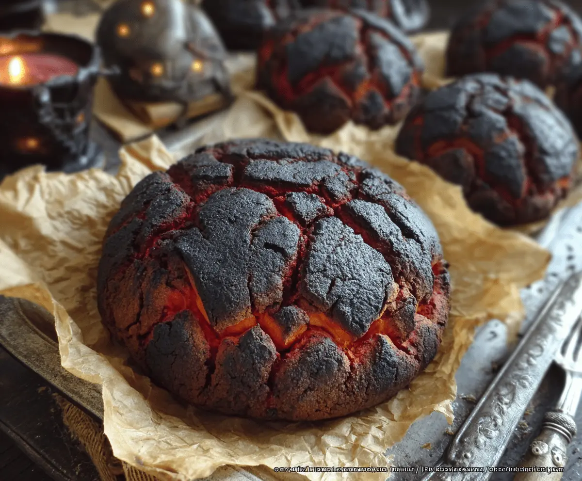 This Halloween Brimstone Bread takes about 1 hour for preparation and 25-30 minutes for baking. Additionally, you’ll need about 1 hour for the dough to rise. So, in total, you’re looking at around 2 hours, but most of that is just waiting for the dough to do its thing!