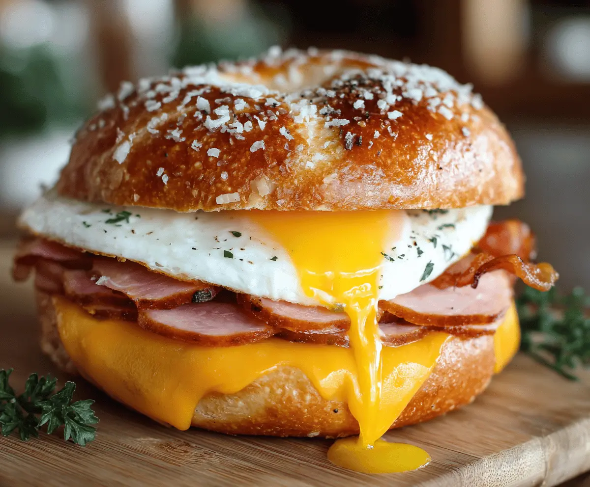 Yes, you can prep the ingredients ahead of time! Cook the eggs and bacon, slice the ham, and toast the bagel when you’re ready to eat. This way, you just need to assemble and enjoy your sandwich fresh!