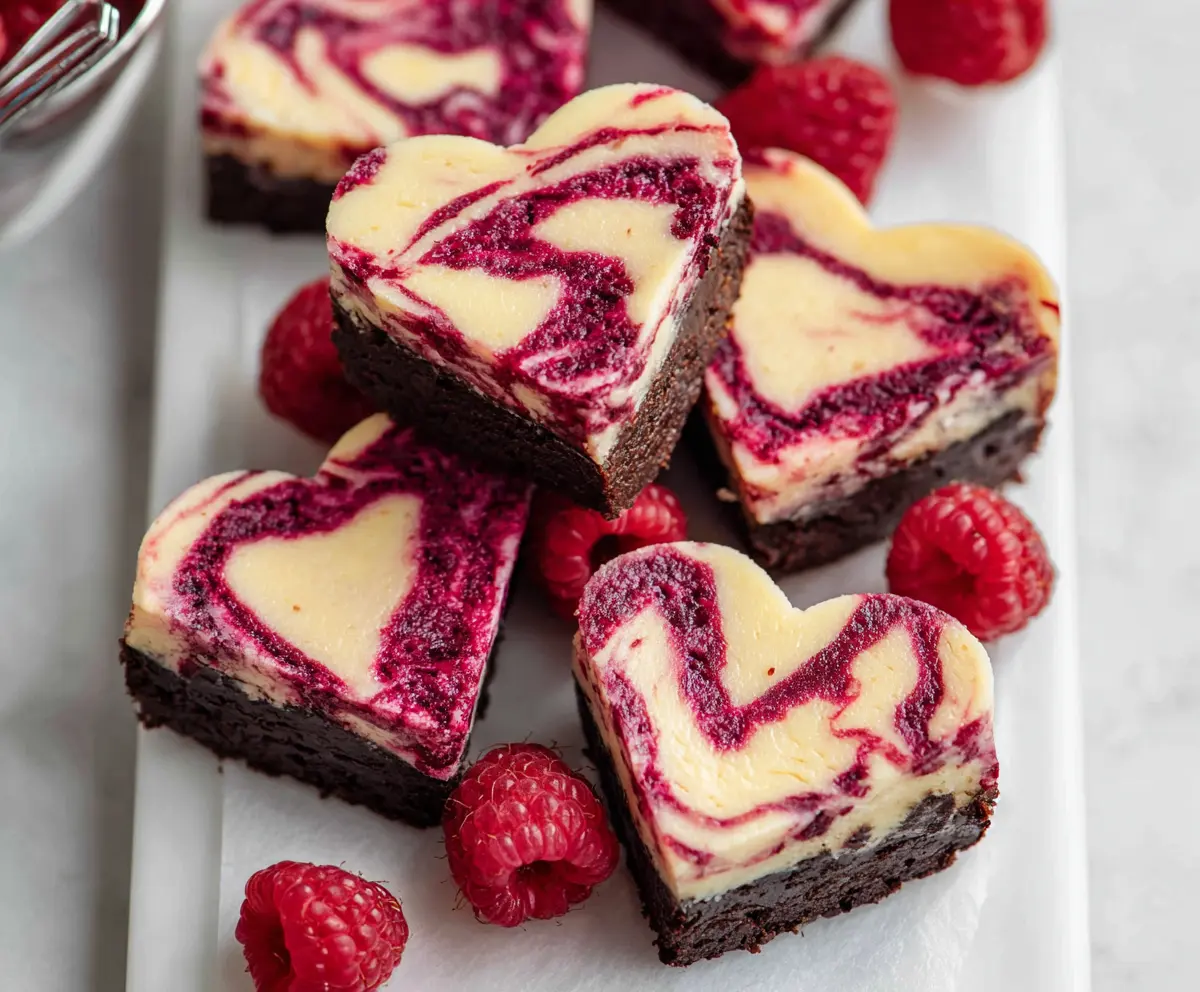With a rich chocolate base, creamy cheesecake layer, and a fresh, tangy raspberry swirl, these heart-shaped brownies make for a perfect treat for any occasion. Enjoy every delightful bite!