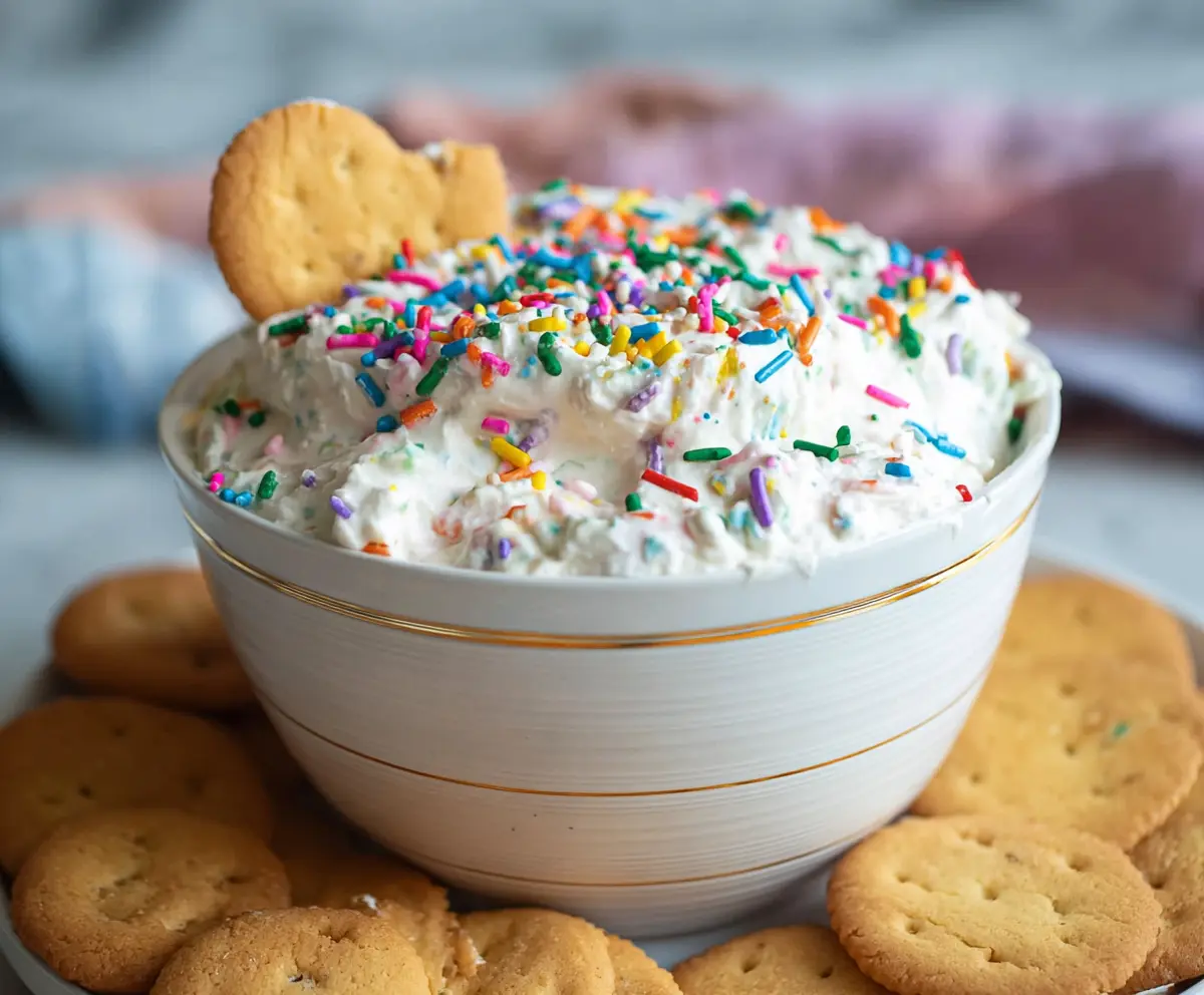 This fun and colorful Funfetti Dip is perfect for parties or just a tasty snack! Made with cream cheese, whipped topping, and sprinkles, it’s sweet and fluffy.