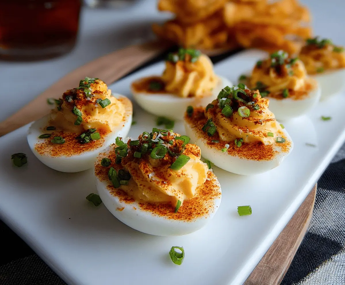 Sprinkle a little extra smoked paprika on top for a pop of color and flavor. Then garnish with the thinly sliced green onions. These can be served right away or chilled in the fridge until you’re ready to enjoy them. Serve them cold or at room temperature, and enjoy the delightful balance of creamy, spicy, and sweet flavors!