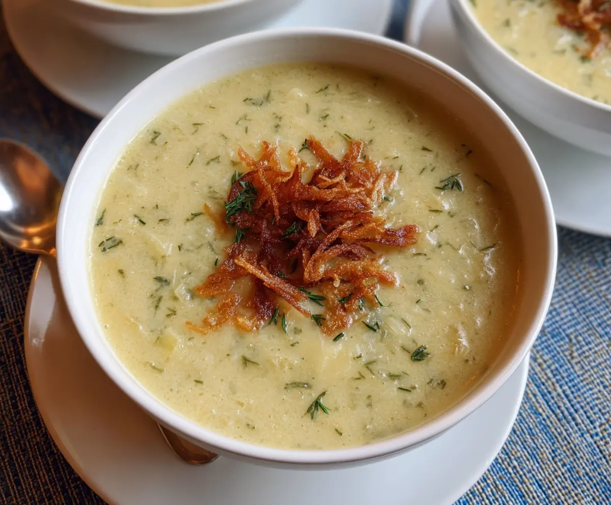 This creamy soup is packed with flavor, smooth in texture, and topped with a delightful crunch from the fried onions. Perfect for any day!