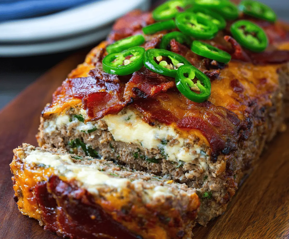 Slice your Jalapeño Popper Meatloaf and serve it warm. Enjoy this delightful mix of cheesy, spicy, and smoky flavors!