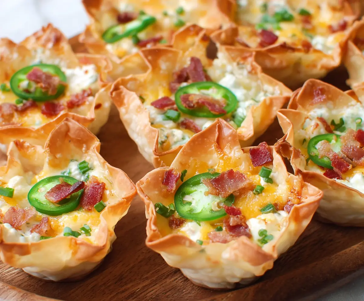 Enjoy your crispy, cheesy, spicy Jalapeño Popper Wonton Cups! They’re sure to be a hit! 🌶️🧀