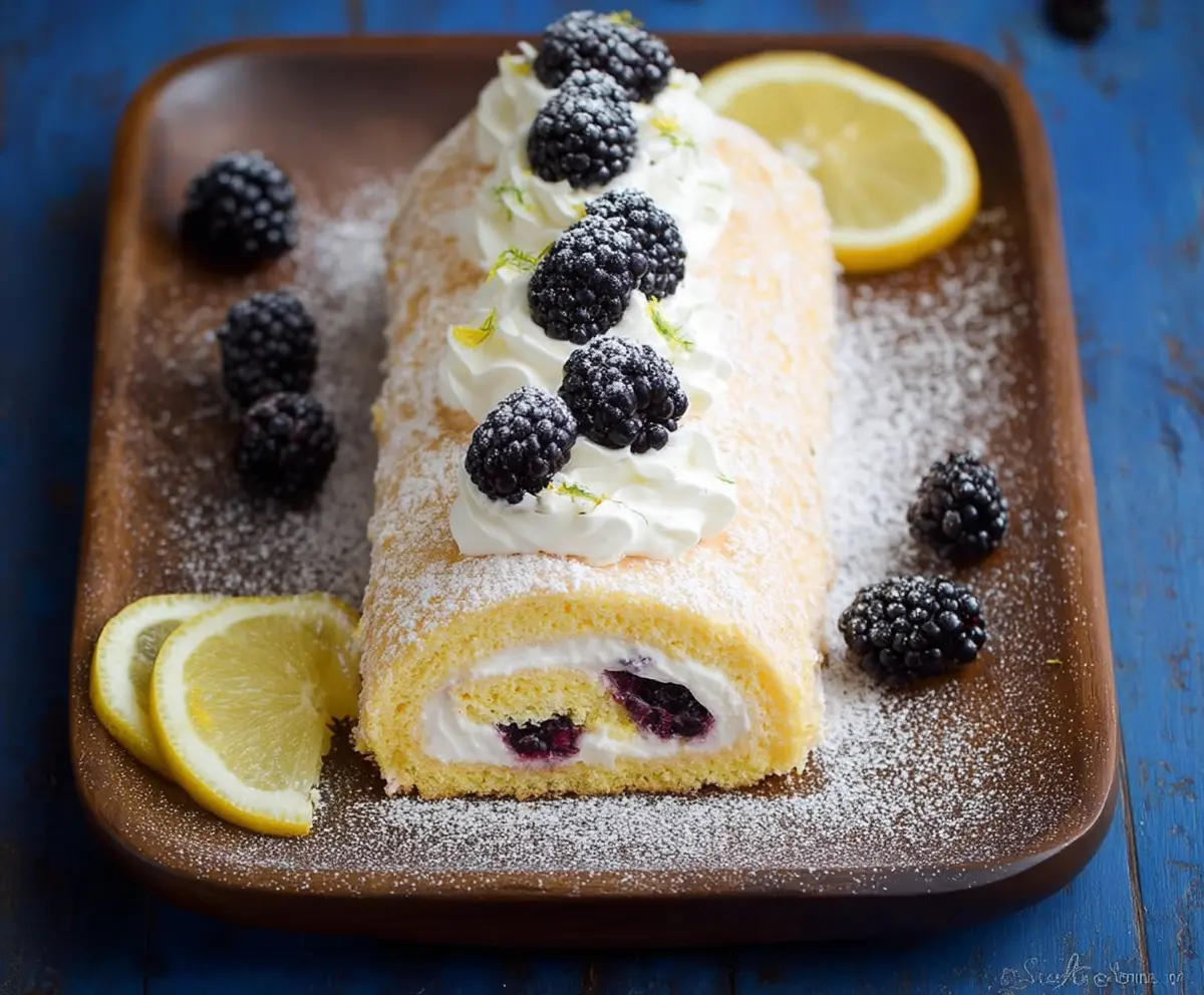 This Lemon and Blackberry Cake Roll is a delicious twist on dessert! The bright lemon flavor combines perfectly with sweet blackberries, all wrapped in a soft sponge cake.