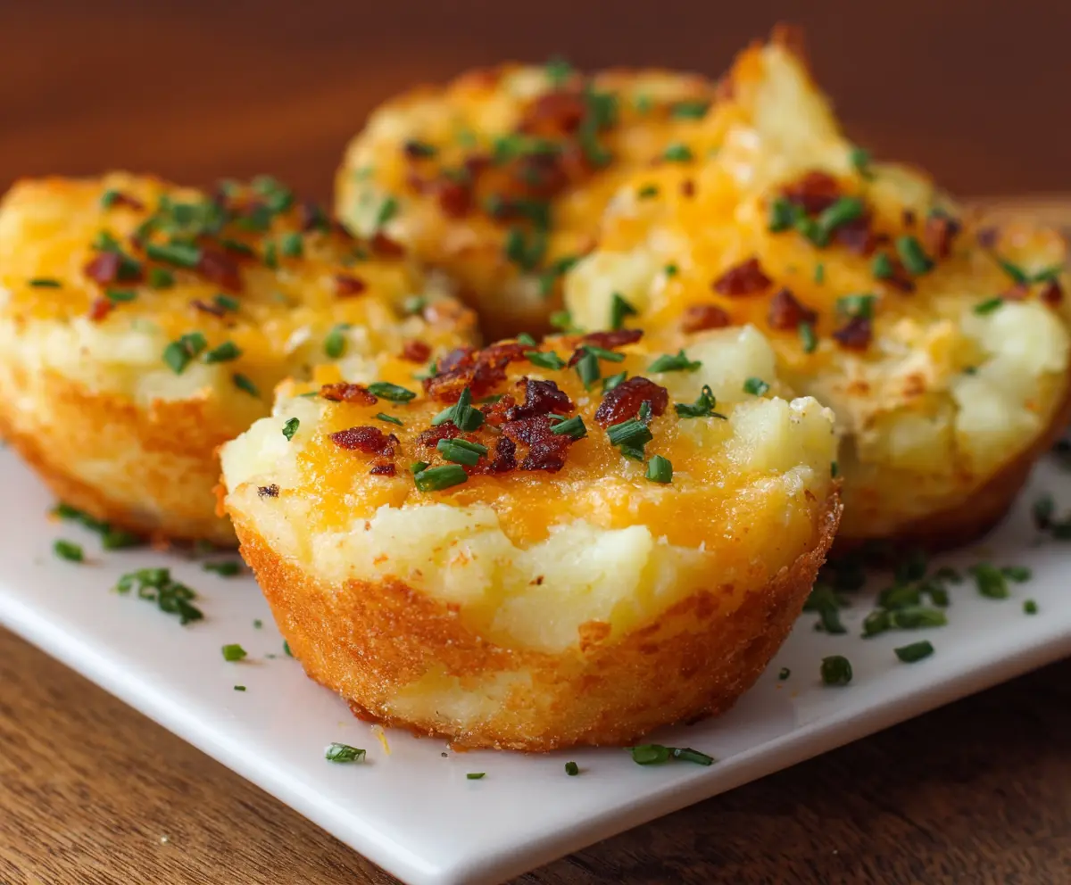 Now it’s time to fill your muffin tin! Spoon the mashed potato mixture evenly into each muffin cup. Don’t be shy—fill them almost to the top and create a little mound on top for that perfect pop!