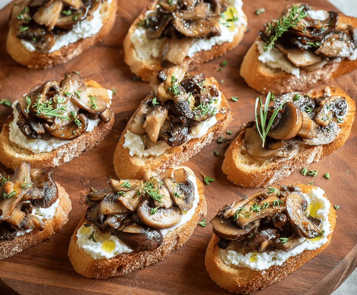 These mushroom crostini are a tasty bite-sized treat! With crispy bread topped with savory mushrooms and herbs, they are perfect for parties or a cozy night in.