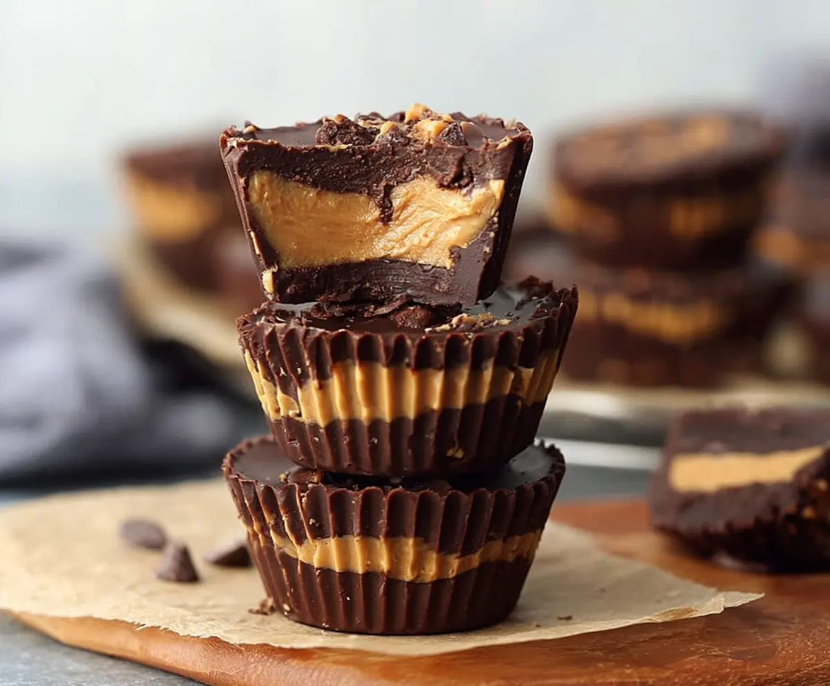 These rich, layered peanut butter protein cups combine a creamy, protein-packed filling with smooth chocolate, making them an excellent snack or dessert option!