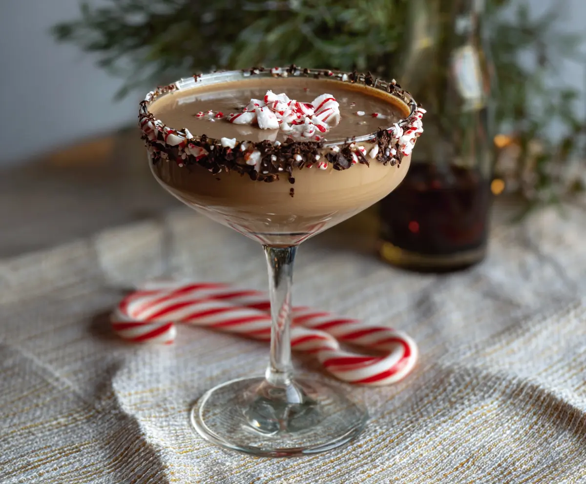 This cocktail perfectly combines creamy chocolate, rich coffee, and refreshing peppermint. The beautiful presentation with a chocolate-rimmed glass and candy cane garnish will surely delight everyone at your holiday gathering!