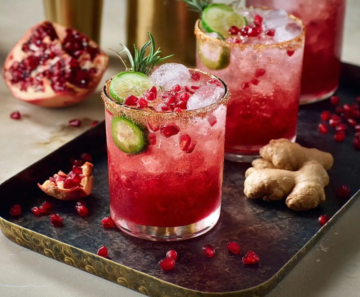 The Pomegranate Ginger Fizz is a refreshing drink that combines the sweet taste of pomegranate juice with a zing of ginger. It’s bubbly, bright, and oh-so-fun!