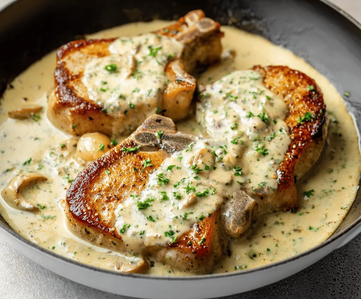 Enjoy your juicy, flavorful pork chops swimming in this rich, garlicky cream sauce!