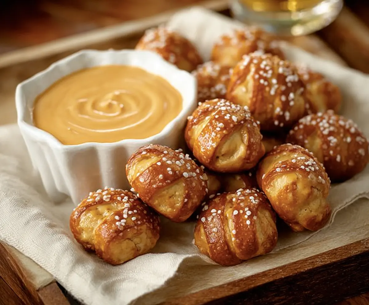 Enjoy your homemade soft pretzel bites paired with creamy, flavorful beer cheese — a perfect snack for any occasion!
