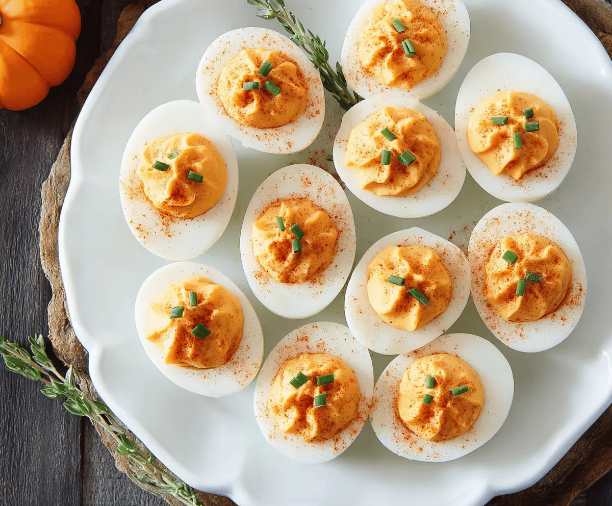 These Pumpkin Deviled Eggs are a fun twist on the classic dish! Filled with a creamy pumpkin and spice mix, they add a seasonal zing to any meal.